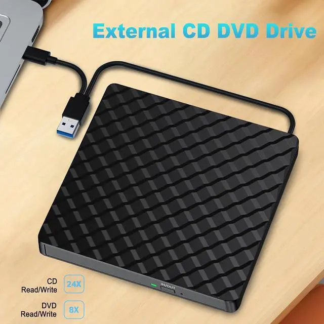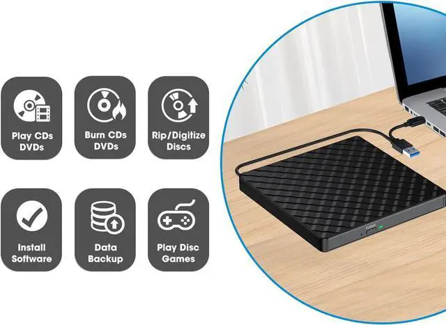 - Slim and portable: External DVD drive is lightweight, easy to use, and with embedded cable design, you can carry it at home or on the go.