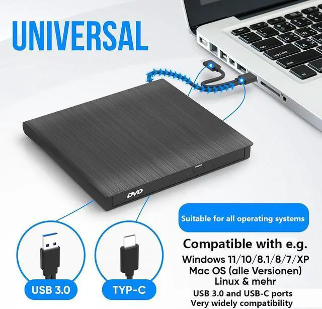 USB 3.0 & Type-C high speed interface: This ultra slim DVD burner adopted USB 3.0 & Type-C technology. It allows faster data transfer speed.