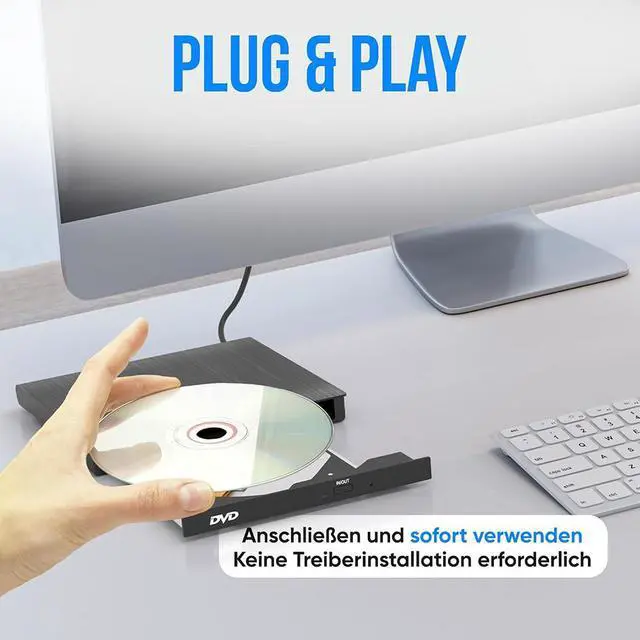 The ultra-thin portable DVD drive is lightweight and easy to use and carry at home or on the go.