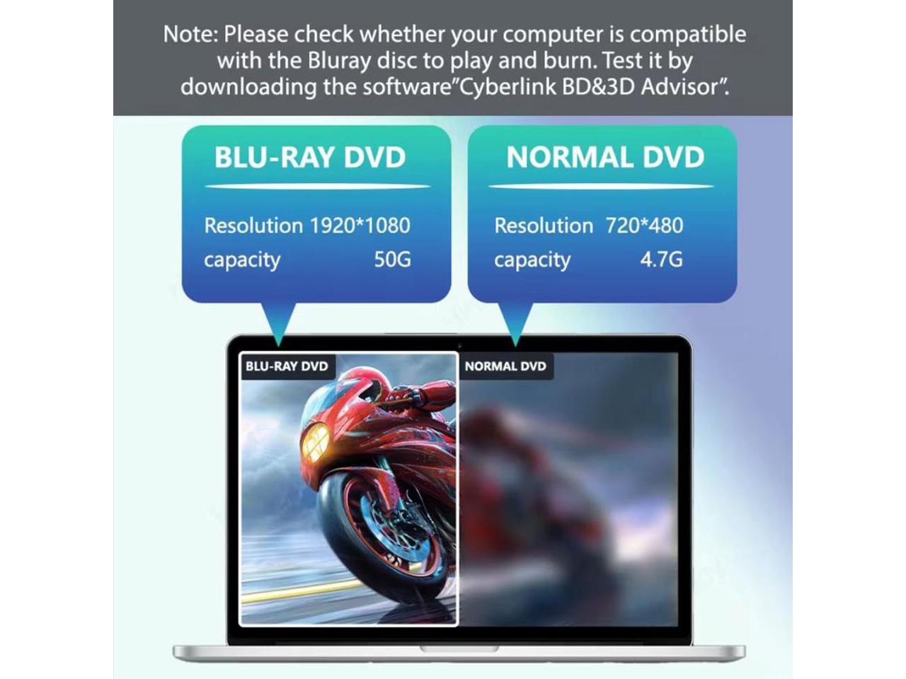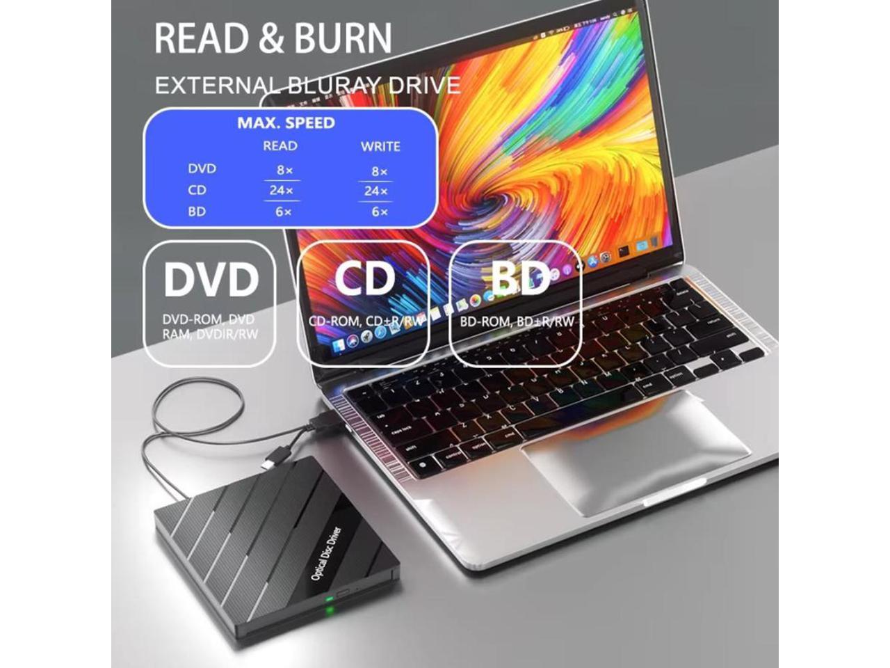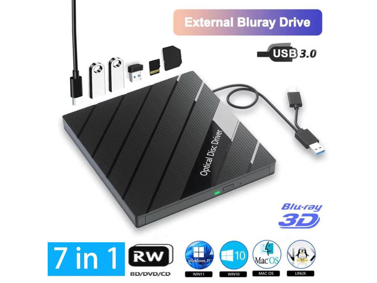 [7 In 1 Blu Ray Drive] External blu-ray drives is not only a bluray CD and DVD reader, but also a bluray CD/DVD burner, writer, rewriter,recorder,ripper and many port hub(3 USB 2.0 & 1 USB 3.0 Ports, 1 Type-C Port and 2 TF/SD Card Slots)