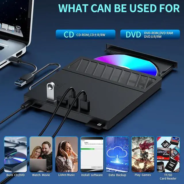 ![Alt view image 6 of 7 - IHDAPP External CD/DVD Drive for Laptop, [7-in-1] USB 3.0 Portable CD/DVD Player Burner, High-Speed External Disk Drive with SD/TF Card Reader, 4 USB Ports, Compatible with Windows 11/10, Linux, MacOS](https://c1.neweggimages.com/productimage/nb640/AMYES2412070GGX5L6E.jpg)