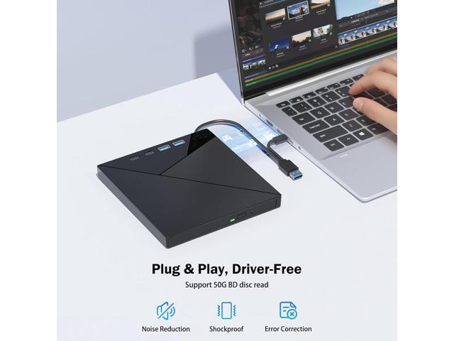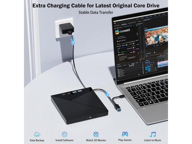 - Portable Blu Ray Player: The unique design of our Bluray drive combines both the drive and two different USB cables in one, making it highly convenient and practical.