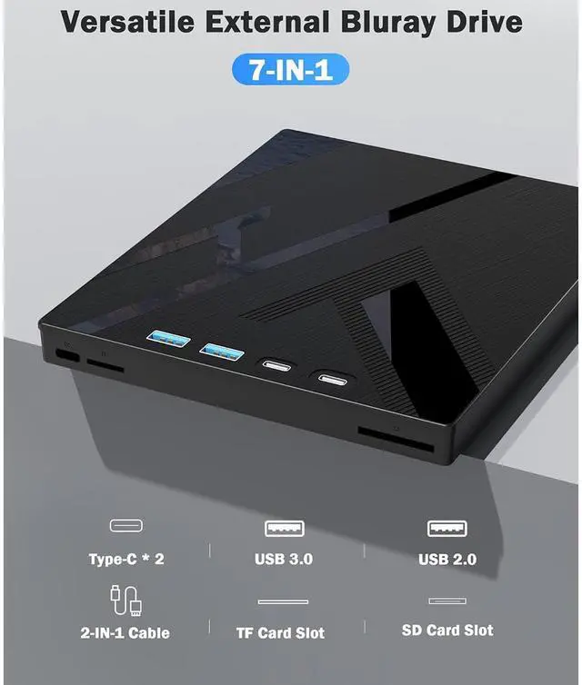 ![Alt view image 7 of 7 - IHDAPP [7 in 1] External Blu Ray Drive, External Blu-ray CD DVD Drive for PC with SD/TF Port Blu Ray Burner, Support 100G Disc R/W for PC External Blu Ray Drive for Windows Linux MacOS Laptop Desktops](https://c1.neweggimages.com/productimage/nb640/AMYES2511060AKWQCB9.jpg)