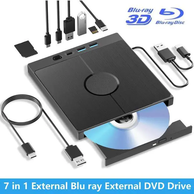 IHDAPP 7 in 1External Blu Ray Drive, Portable Blueray/DVD Drive for PC with USB 3.0/Type-C/SD/TF Card Ports, Support 100G Disc External USB Blu Ray Drive, CD DVD Burner for Windows XP/7/8/10/11 MacOS