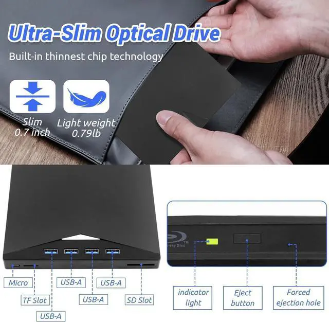 ![Alt view image 2 of 7 - IHDAPP [7 in 1] External Blu-ray Drive - Portable Blu Ray Drive, DVD/BD Player Blu Ray Burner with USB 3.0 Type-C, Portable 3D CD DVD Optical Blu Ray Drive for Laptop PC Desktop Windows 11 10 Mac OS](https://c1.neweggimages.com/productimage/nb640/AMYES2601160I4KOQA5.jpg)