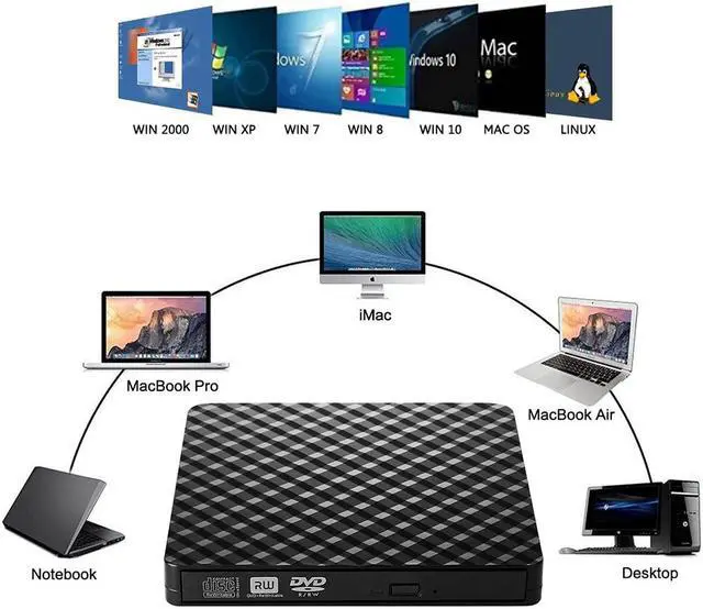 * All-in-one Reader Writer ReWriter Burner. Support CD-R, CD-ROM, CD+/-RW, DVD-ROM, DVD-R, DVD+/-RW, DVD-R DL, VCD and burning CD DVD discs.