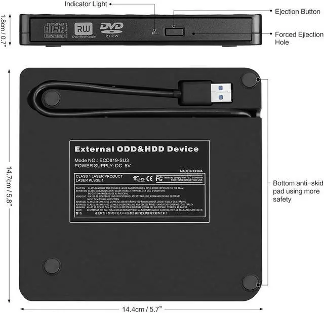 Plug and Play / High-Speed USB 3.0 CD DVD Reader Writer Burner