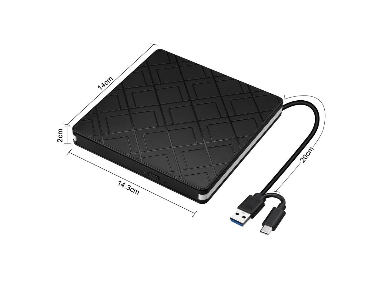 - USB 3.0 and Type-C Interface: Without driver program or extra power required, fully powered by usb ports. Specially designed for dual port Type C and USB 3.0. This DVD-RW drive provides you high speed data transfer with strong fault tolerance. Compatible with USB 2.0