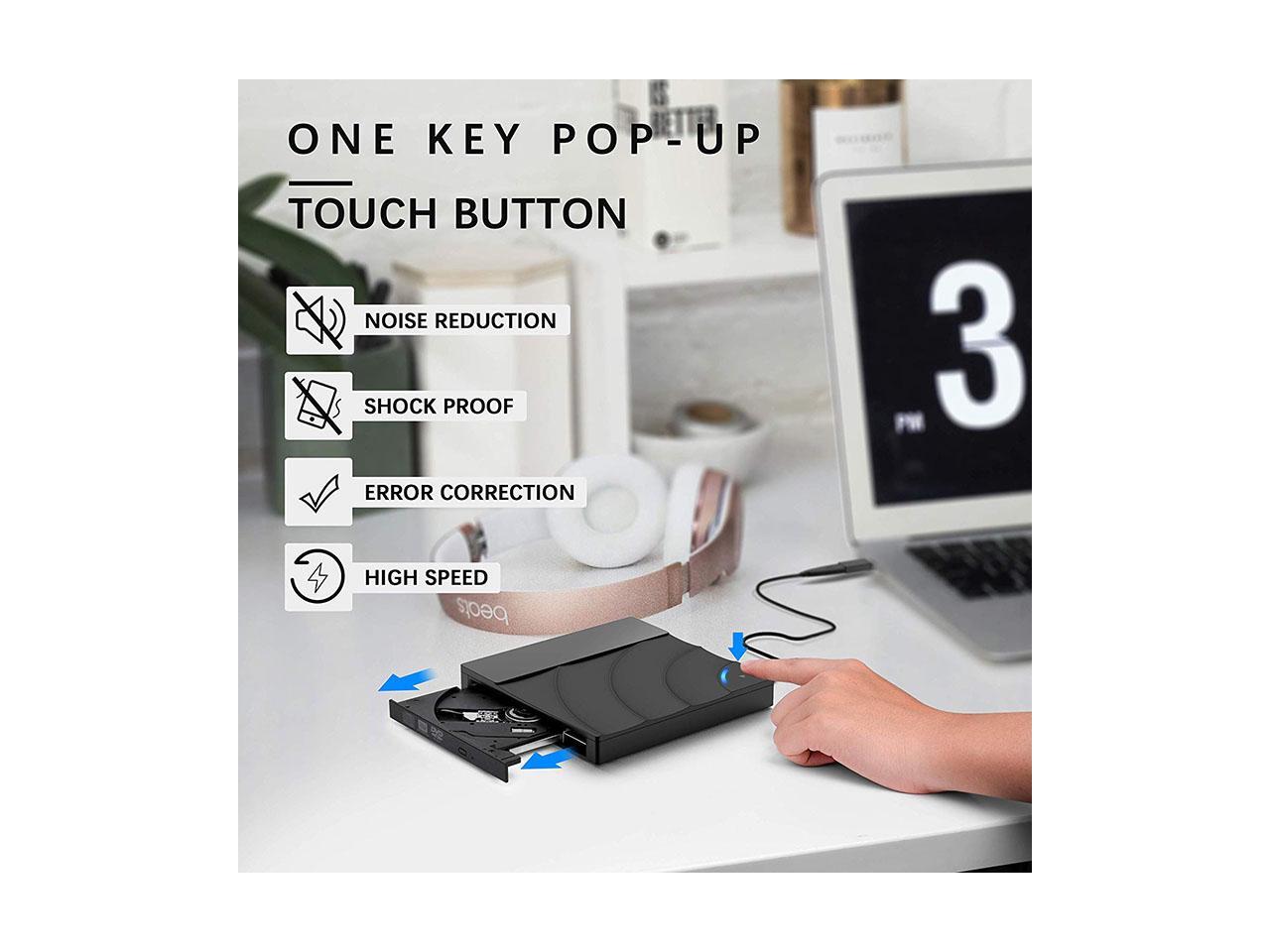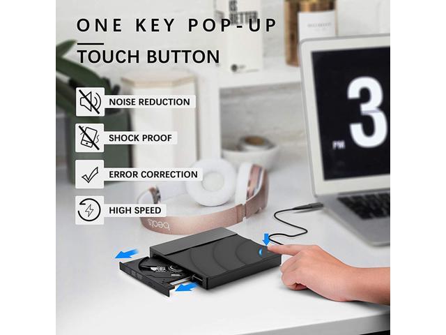 - Intelligent tech. Designed with eject button so that you never have to worry about your disc getting stuck inside this external CD/DVD drive. The copper mesh technology of this external component, you can be rest assured of stable data transmission