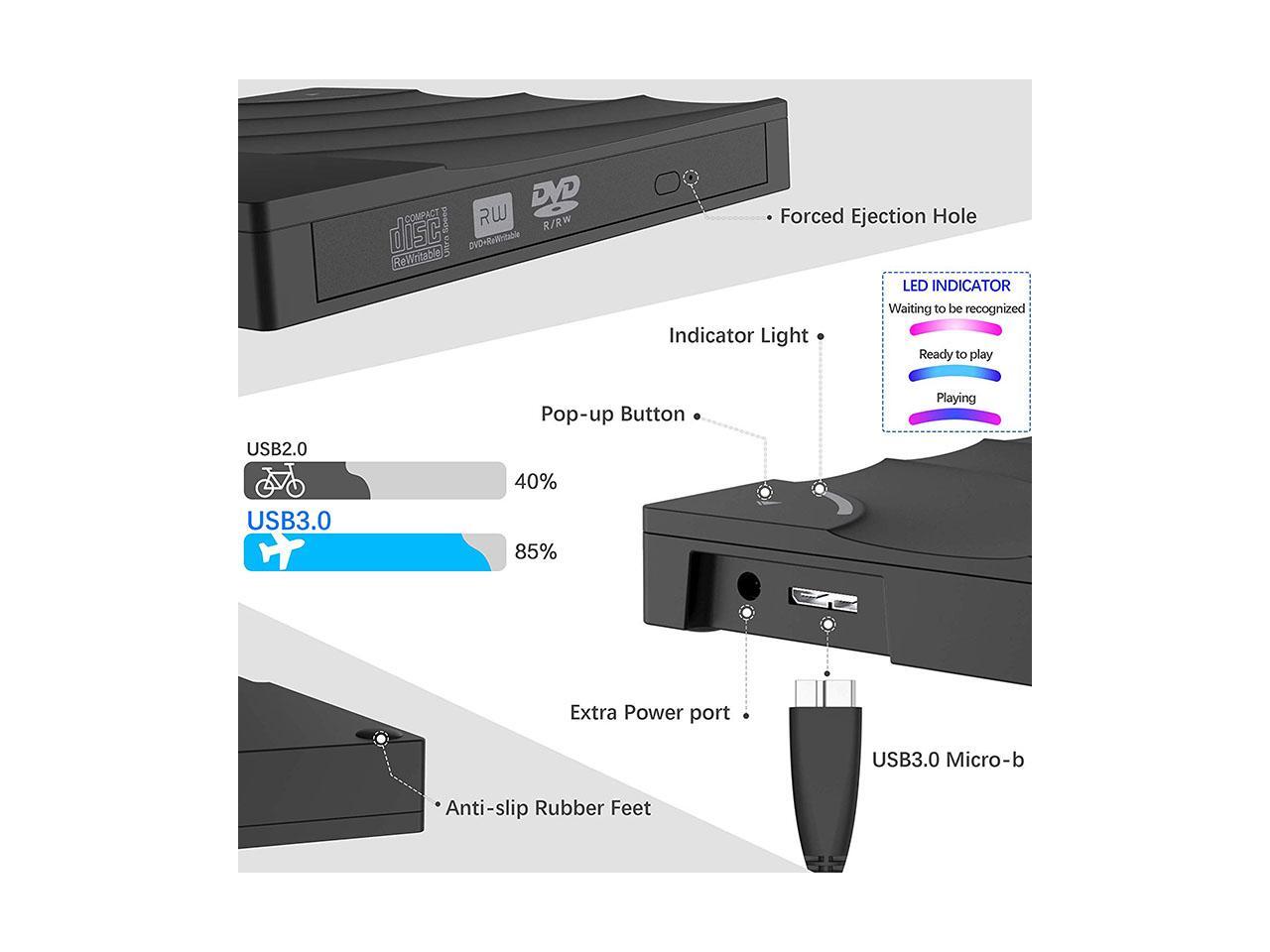 - Plug & play. Easy to use,powered by USB port. No external driver and Power needed. Just plug it into your USB port and the DVD driver will be detected