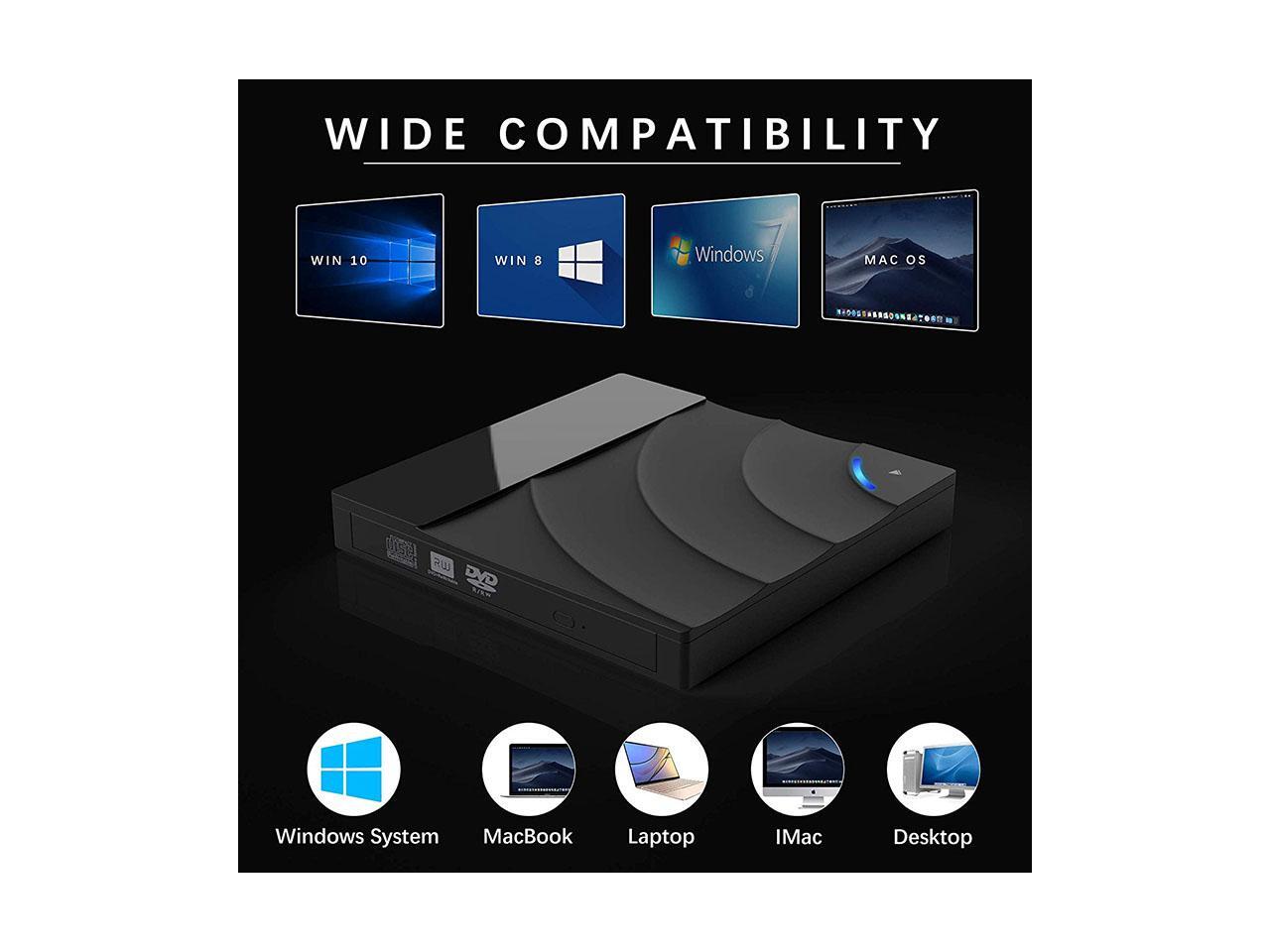 Portable high-speed USB 3.0 CD DVD-RW Optical Drive External Slim Disk Reader Desktop PC Laptop Tablet Promotion DVD Player for PC Laptop Desktop MacBook Mac Windows 7/8.1/10 Linux OS