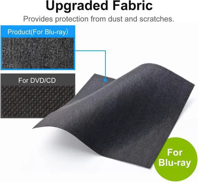 • PROTECTION + FABRIC: It is made of soft non-woven fabric with less unevenness. Since it is soft and has few fiber bumps, it prevents unevenness transfer and scratches as much as possible. Perfect for storing Blu-ray discs. Of course, DVDs and CDs can also be stored.