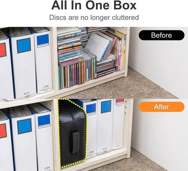 PREMIUM MATERIAL: The case is made of top made of PU + PP, which is durable, waterproof, dustproof, which will protect well your CDs from scratches and dust. The disc contact surface has a grainy finish that prevents label ink from sticking.
