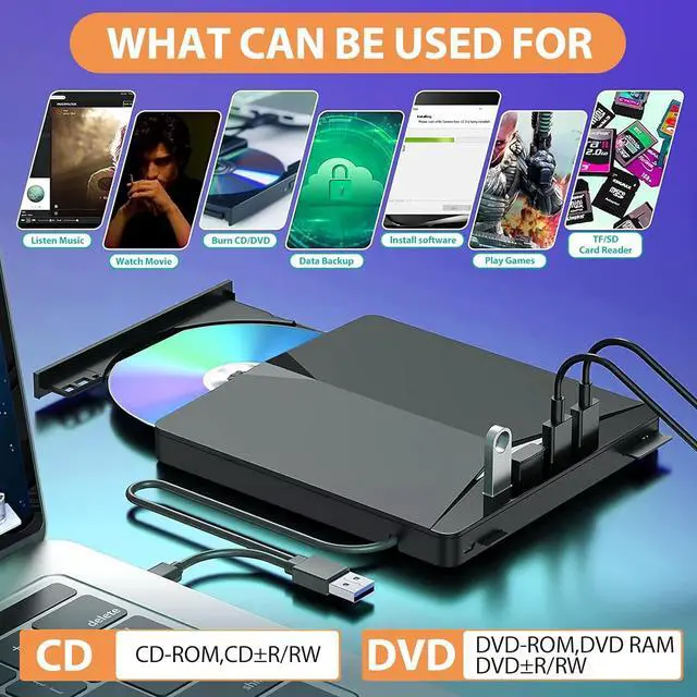 Looking for a slim external DVD drive to enjoy your CD/DVD collection on laptops without built-in drives? Your search ends here with our 7-in-1 solution: