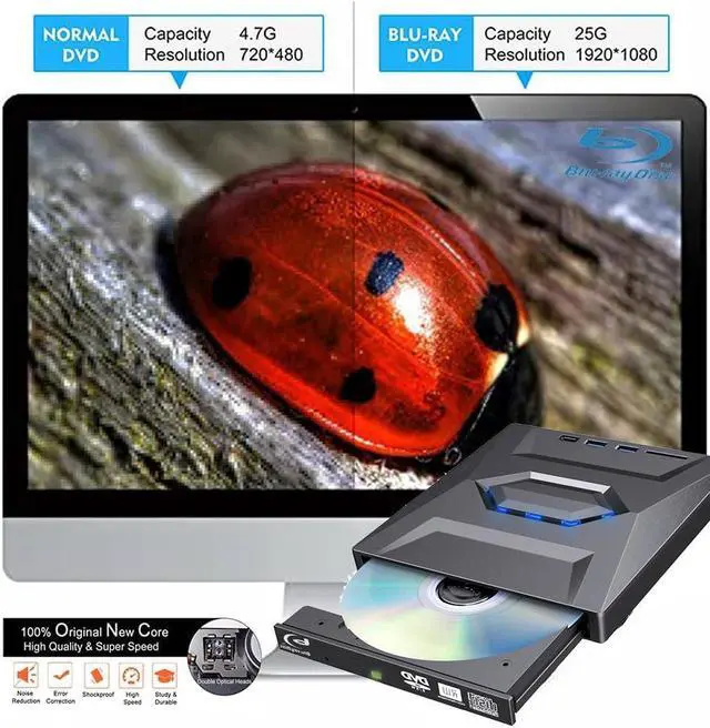 Powerful function: blu ray drive supports writing to M-DISC, an external long-life write-once optical storage medium, allowing you to back up data in your computer to a high M-DISC. Playback of dubbed terrestrial digital content, playback of AVCREC format files shot with camcorders, playback of AVCREC discs made with TV recorders, etc. blue ray player for laptop has powerful storage capacity and fast reading speed