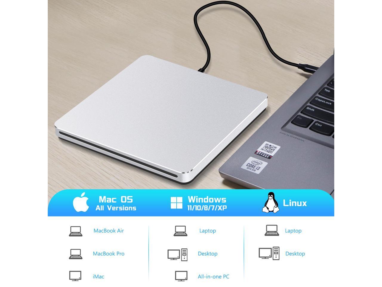 - Specially Designed for MacBook: This external DVD drive is made with full aluminum alloy, perfect match with the material of MacBook, sleek & slim with latest USB-C for Mac/MacBook Air Pro.We still prepare a USB 3.0 adapter in case some laptops without USB-C for using this DVD drive.
