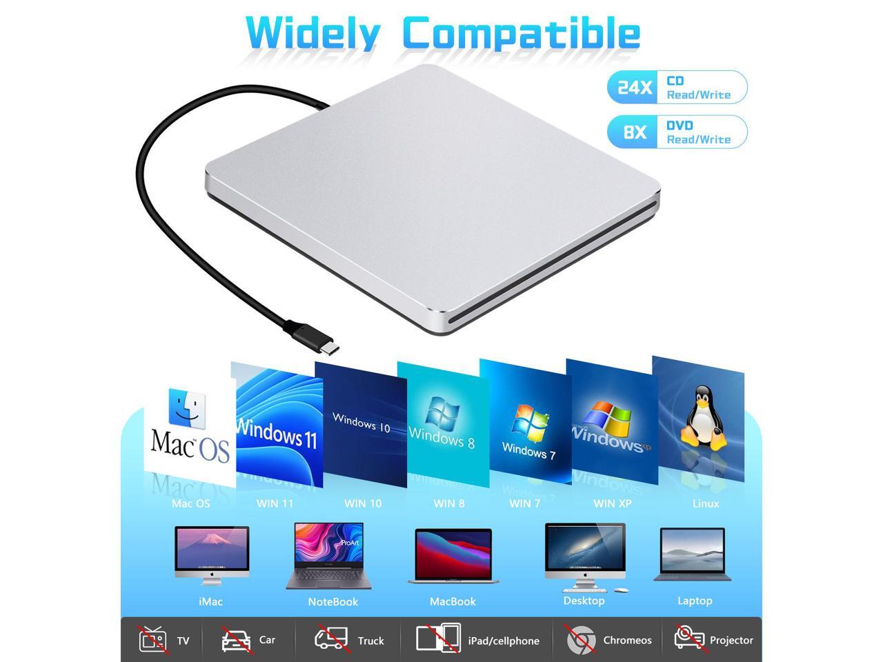 External DVD Drive USB 3.0 Type-C CD/DVD Drive Slot-in DVD Player for Laptop Disk Drive DVD Burner Reader CD ROM External Drive for Laptop Mac MacBook PC Windows 11 Desktop