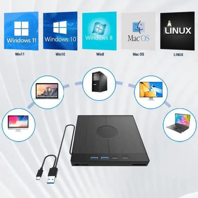 Wide Compatibility: Our CD burner proudly supports a vast range of operating systems, including Windows 11/10/8/7, Linux, and Mac OS. Its universal design ensures interaction with PCs, laptops, and notebooks, boasting advanced error correction, non-slip, and quiet operation for undisturbed music, movie enjoyment, gaming, and
