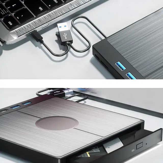 Play: The convenience of our portable CD/DVD burner shines with its plug-and-play setup. Powering directly from the USB 3.0 port and merging reading and burning operations, this drive simplifies usage-just connect the USB A or USB C cable, load your media, and you're set to go, no driver installation necessary.