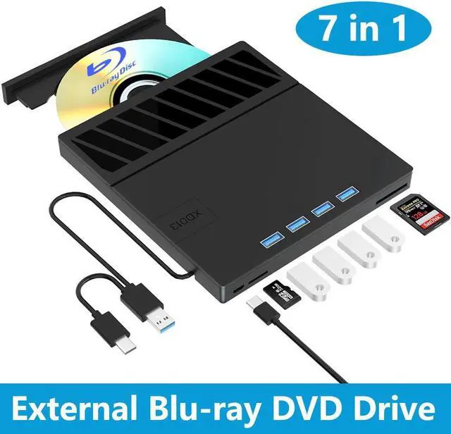 ![Main image of [7-in-1] External Blu-ray DVD Drive, BD Player with Read/Write Blu ray Drive Burner SD/TF Card Slots and 4 USB Ports DVD Burner Optical Drive 3D Bluray Drive for Laptop PC Desktop Windows 11 10 Mac OS](https://c1.neweggimages.com/productimage/nb640/AR4TS2403270BEDGL1B.jpg)
