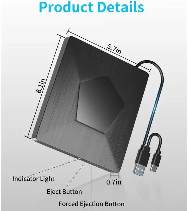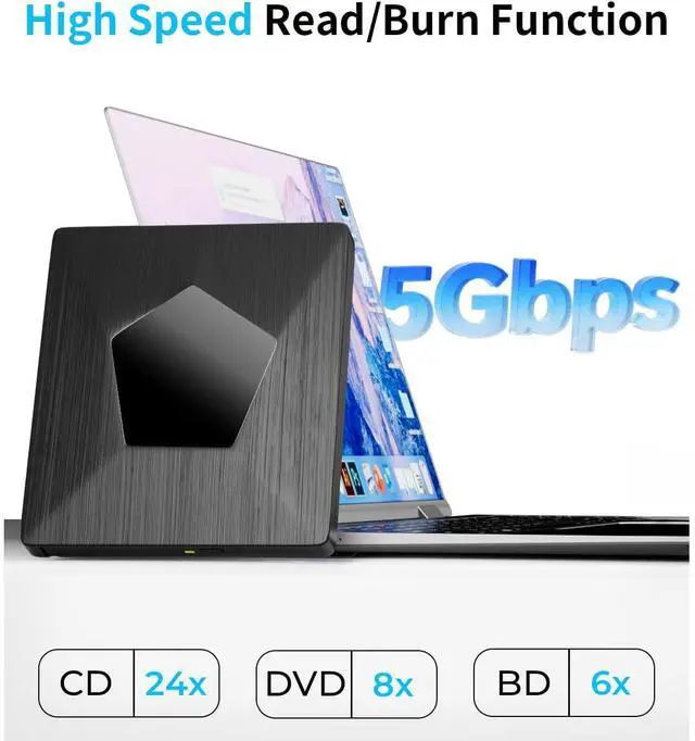 Newly upgraded USB 3.0 interface: this External Blue Ray CD DVD reader adopts the latest upgraded usb 3.0 interface, with 5Gbps super-fast transmission speed, ten times faster compared with USB 2.0, you can enjoy the smooth experience brought by the high-speed External Bluray Burner.