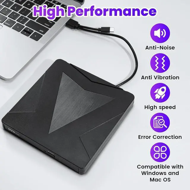 3. Plug-and-Play. No need for additional drivers or external power supply, simply connect it to the USB port to recognize the DVD drive.