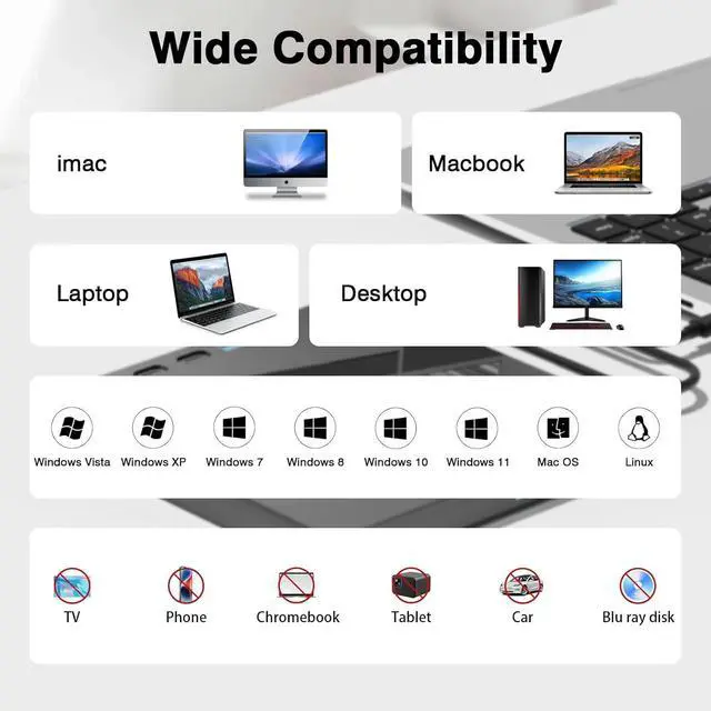 Universal Compatibility: Designed to work seamlessly across platforms. Fully compatible with Windows 11 / 10 / 8.1 / 7, macOS 10.16 and above (for MacBook Pro, MacBook Air, iMac), and most Linux distributions. Supports a vast range of desktops and laptops.