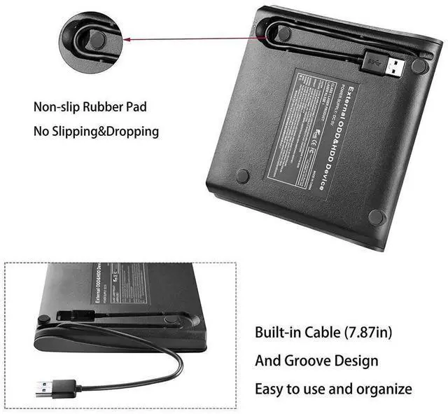 6. External CD DVD Drive features two USB ports, one TF slot.