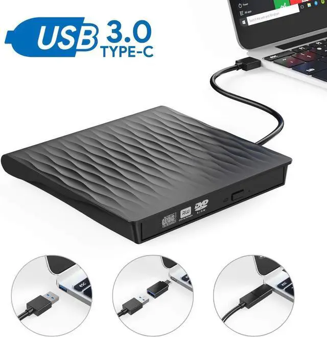External CD DVD Drive, USB Type C Dual Port CD Drive, DVD +/-RW CD +/-RW Writer Burner Player with Classic Silver for MacBook Air, MacBook Pro, Mac OS, PC Laptop (SLS01, Black)