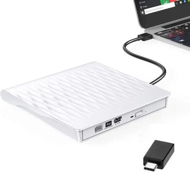 External CD Drive USB 3.0 Portable CD DVD +/-RW Drive DVD/CD ROM Rewriter Burner Writer Compatible with Laptop Desktop PC Windows Mac Pro MacBook (SLS01, White)