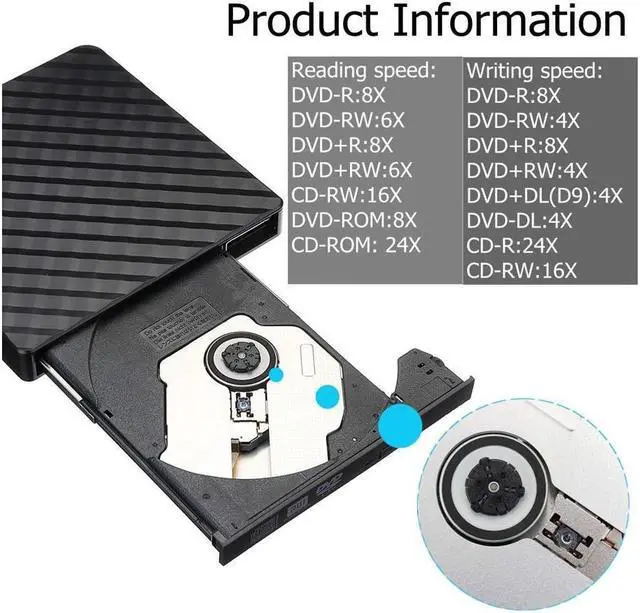 Wide Compatibility - This external DVD drive compatible with Windows XP / Win7 / Win8 / Win10, Linux, Mac OS system. Fit for laptops / desktops / Macbook without a internal drive. With this CD/DVD burner, you can watch DVD movies, install software, listen to music, burn files, burn movies to CD/DVD etc.