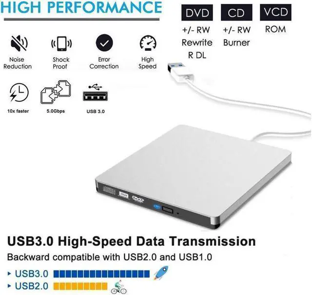 What dvd drive can do? - USB dvd drive external 3.0 providing you fast data transfer speed and also compatible with USB 2.0. It is a great drive which not only a reader, but also writer / rewriter / burner, you can backup files, listen to music, watch videos, install software with your computers