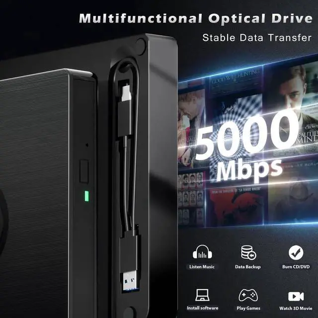 2.Keep the external cd drive away from strong magnetic objects and ensure it is placed on a stable desktop surface to prevent damage or unstable operation.