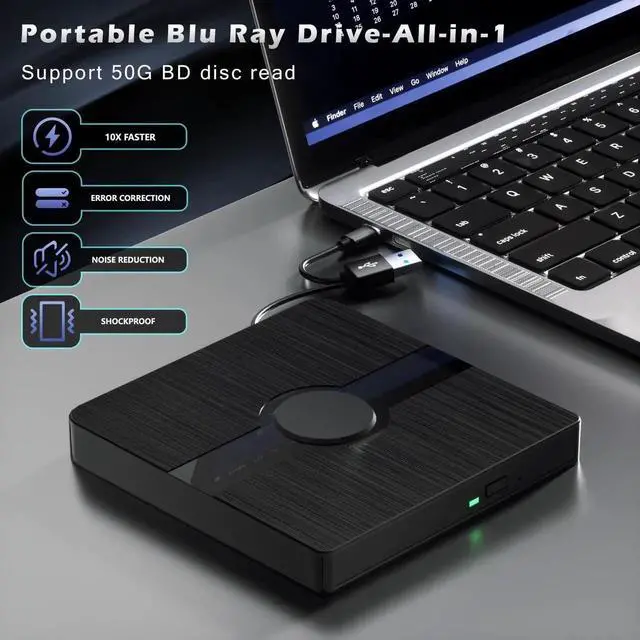 2. 3D Ultra HD USB CD Drive: Wbacon USB 3.0 & Type-C external Blu-ray drive offers support for 3D playback and delivers high nearly to 4K. However, it's important to note that the drive does not support the playback of 4K Ultra HD discs. It is essential to have playback software on the computer that supports the Blu-ray format. If copyrighted external blu-ray drives have zone bit code protection, you need to download the shielding software Any DVD to decode the zone bit code.