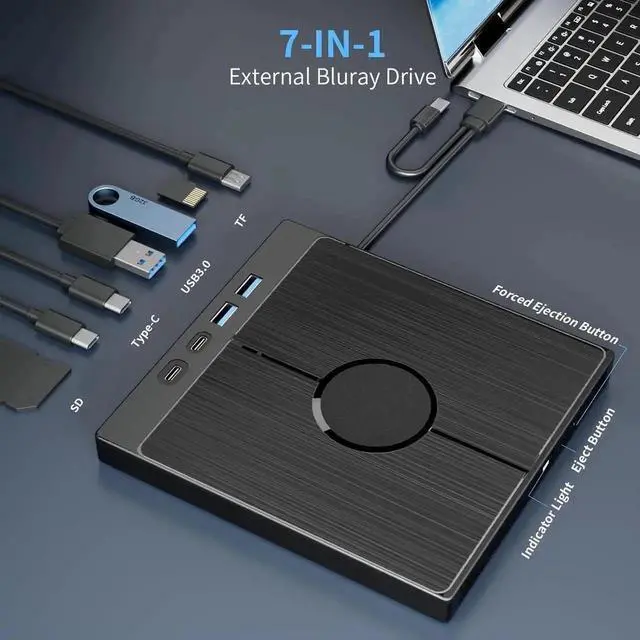 ![Alt view image 2 of 7 - Vszerda External Blu Ray Drive [7 in 1], Portable Blu-Ray/DVD Drive with USB 3.0/Type-C/SD/TF Card Ports, Support 100G Disc Blu Ray Drive External, Blu Ray Burner for Windows XP/7/8/10/11 Mac Laptop](https://c1.neweggimages.com/productimage/nb640/B4D1D2602090K1HAWBD.jpg)
