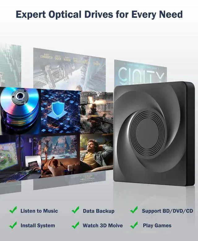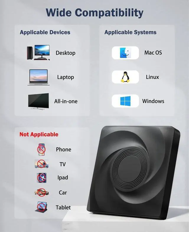 Wide Compatibility --- The USB 3.0 & Type-C Bluray drive supports a wide range of operating systems, such as Windows XP/2003/Vista/7/8/10, Linux, and all versions of the Mac OS system. It is an ideal choice for laptops, desktops, and MacBooks lacking an integrated optical drive. Kindly be aware, though, that it is not compatible with BD recorders, tablet iPads, Surface tablets, TVs, projectors, smartphones, or cars.