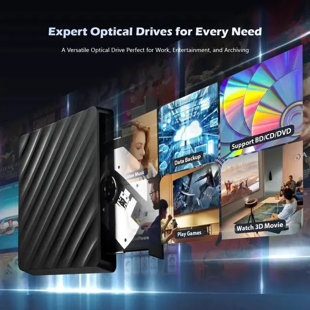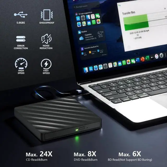 High PerformanceThe external blu ray drive has a larger storage capacity and a faster reading and recording speed. Bluray reading speeds are up to 6x, DVDs up to 8x, and CDs up to 24x. Supports 8.5G 4.7G 700M CD DVD burning capabilities. Higher stability, faster reaction, stable performance and strong fault tolerance. Give users a better experience.