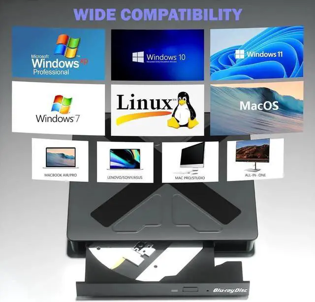 • Wide Compatibility: Fully compatible with Windows 7, 8, 10, Vista, ME, SE, XP, and 2000, as well as Linux and all versions of MAC OS 10 or below. However, it is not compatible with BD recorders, tablet i-Pads, Surface tablets, TVs, projectors, smartphones, or cars.