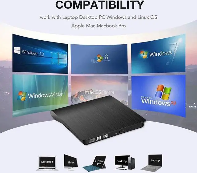 • 1.Ultra-slim portable: Ultra-slim portable DVD drive, lightweight, which is convenient to use and carry whether at home or travelling.