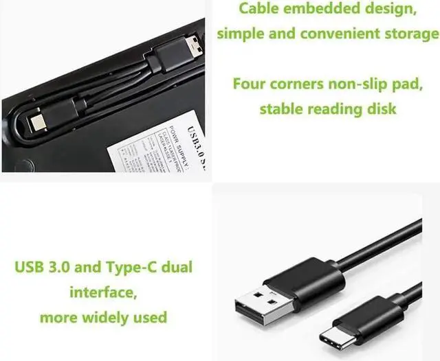 This external blu-ray drives has powerful storage capacity and fast reading speed. The reading speed ofexternal blu-ray drive is up to 6 times, DVD is up to 8 times, and CD is up to 24 times. external blu-ray drives The high-quality 3.0 port can reach up to 5Gbps, which is 6 times faster than 2.0. external blu-ray driveType-C interface has strong error correction capability, impact resistance, low noise, and low power consumption.