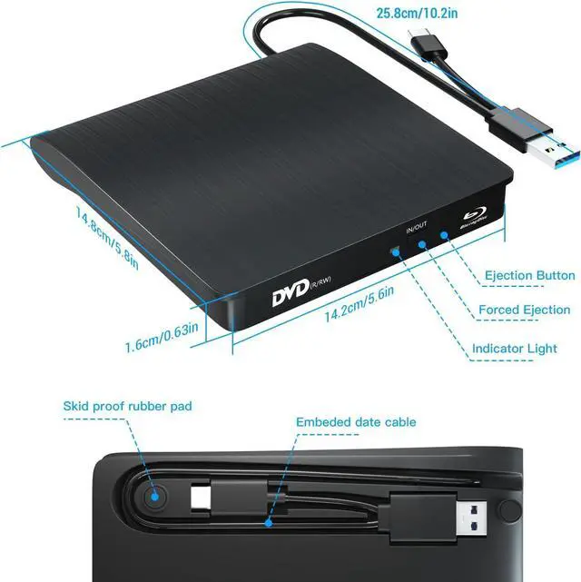 • Supported Formats: DVD-ROM, CD-ROM
