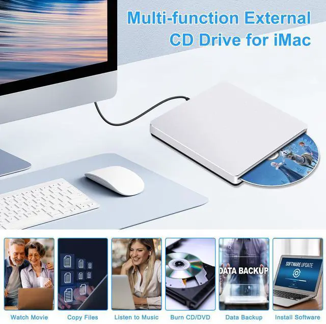Guamar CD rom external drive for laptop can read and write movie DVDs, burn files, videos, photos, rip music CDs, install software/games and create data backup. It is also a good idea to give it as a gift to hobbyists who collect CDs and DVDs.