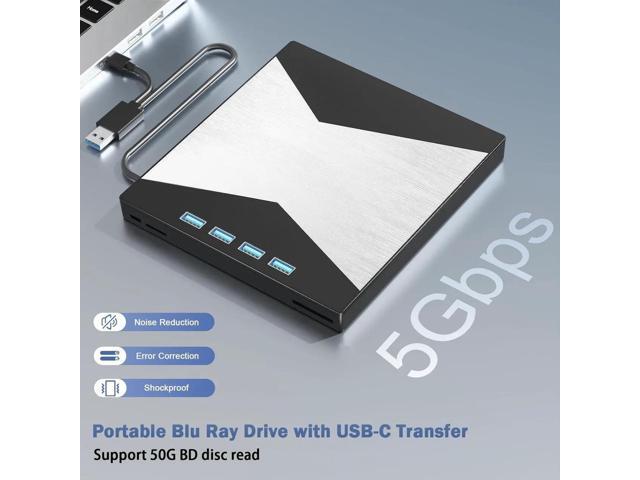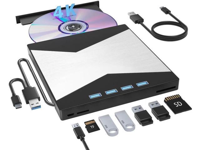 - Multi-Function 4k Blu Ray Player: Most new laptops on the market today do not have a built-in CD-ROM drive, and some only have a limited number of USB ports. External Bluray drives can be connected directly into your laptop, burning/listening to music, watching 4k uhd blu ray movies, backing up data, or installing software and systems. The newly released external blueray/DVD drive for PC has no additional drivers needed, Plug and Play.