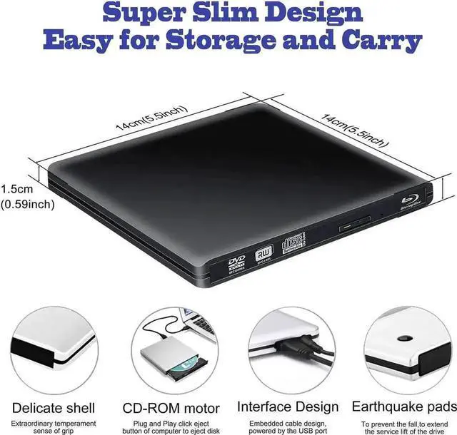 Important: Our External Blu Ray dvd drive not only can read bluray, dvd and cd discs, but it also support write dvd and cd discs and Blu Ray DVD.