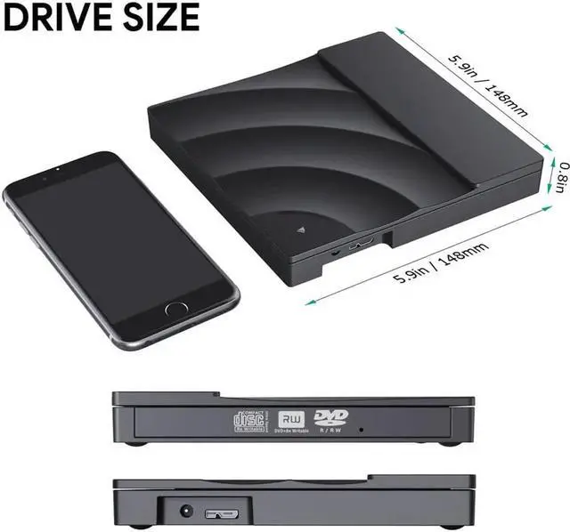 Great compatibility: the External CD DVD Drive is suitable for Windows XP/Vista/7/8/10, all versions of Mac OS. It is specially designed for Apple HP Dell Lenovo and others, Ultrabook, netbook, laptop and desktop without drive hardware.