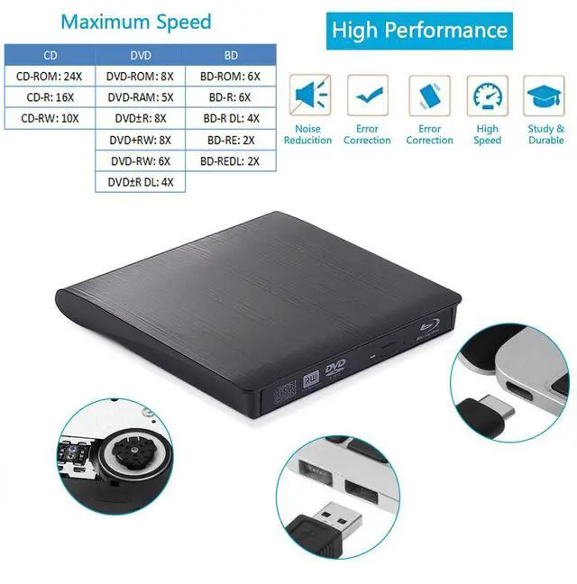 The reading speed of Blu-ray is up to 6 times, DVD is up to 8 times, and CD is up to 24 times. external blu-ray drivesThe high-quality 3.0 port can reach up to 5Gbps, which is 6 times faster than 2.0.