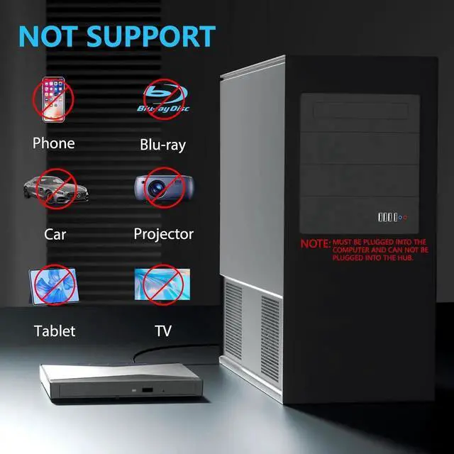 This external DVD drive is compatible with different devices such as Mac Book, i-Mac, Notebook, Desktop, and Laptop, among others. USB DVD drive external supports operating systems such as Windows 11/10/8/7/XP, Vista 7/8, Linux, and Mac OS 10.6 or above. (Note: Surface Pro, Ubuntu, TV, Blu-ray, iPad, projectors, Chromebook and cars are not supported).