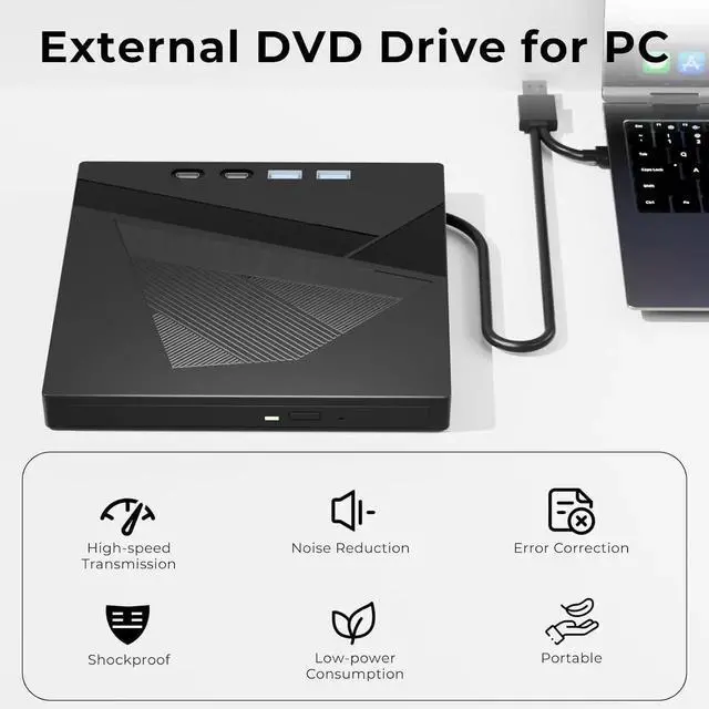To enhance the user experience and efficiency when utilizing a CD/DVD player for laptop, several features have been incorporated, such as error correction, noise reduction and shockproof. With these functions, you can immerse yourself in work or entertainment.