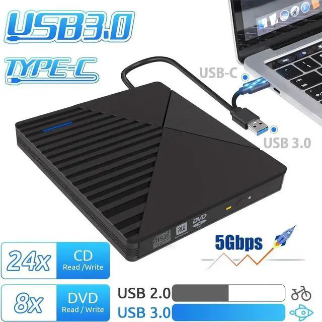 - USB 3.0 & Type-C high speed interface: This ultra slim DVD burner adopted USB 3.0 & Type-C technology. It allows faster data transfer speed.