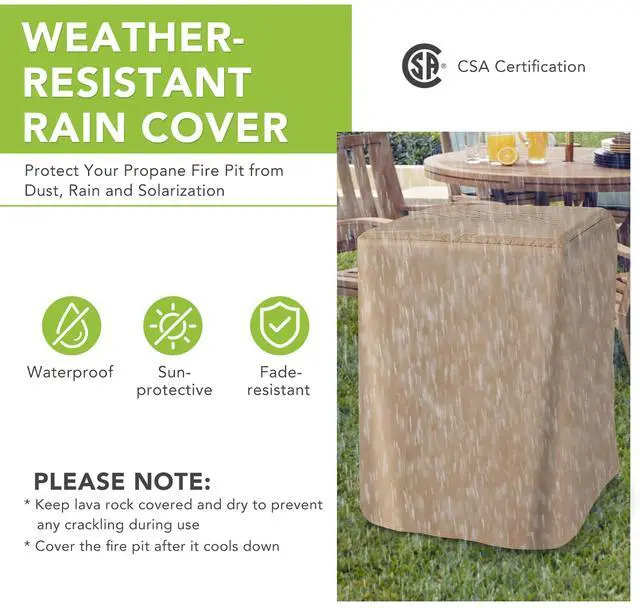 The waterproof cover protects the fire pit from sun and dust when not in use